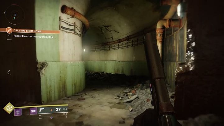 Keep going to find a site lined with pipes, cross this area by going around from the right side, descend the steps past a number 2 plastered on the wall, then exit by taking the stairs down. Enter through the arched opening. Follow the passage to eventually reach the Lost Sector. Continue along by descending the ramp, and pass through the rusty arch. Defeat the enemies settling here, best to shoot the canister to send them flying. Continue through the right passage, going down.