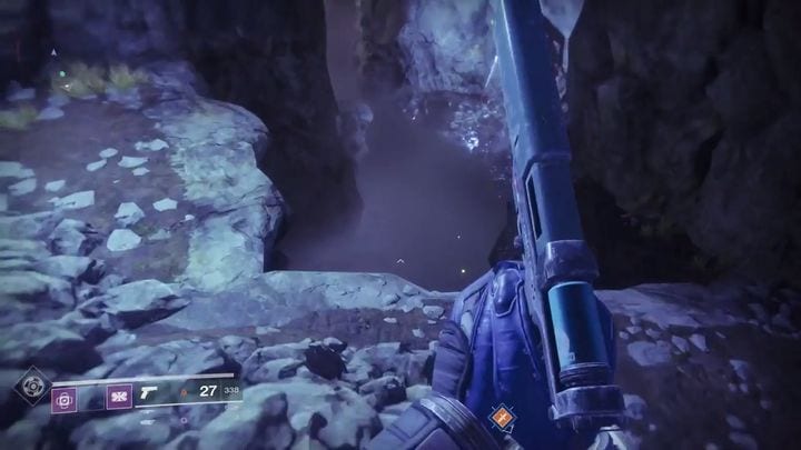 Enter the cave, ignore the alcove on the left and keep going until you find a source of light. Pass through to the right following the light source then drop down. Board the Sparrow until you reach a dead end. Scale to the platform above then cross the tunnel. As you arrive at the facility, defeat the enemies, there will be another by your right as you go scale the steps.