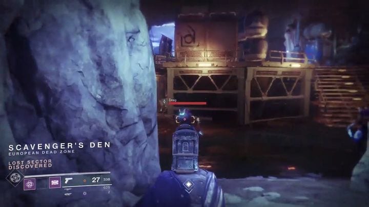 Locate Outskirts Lost Sector Scavenger’s Den by following the marking on the map. Using the Sparrow makes it even more accessible. Pass through the asphalt then transition through the rocky dirt road by zigzagging once you reach the ground below. Turn left by the boulder to find the marking on the concrete ahead.