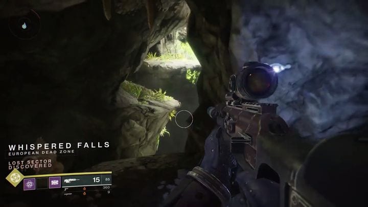 Locate Whispered Falls Lost Sectors by following the map marking. Head behind it to come across a small hole which leads to the dimly lit tunnel.