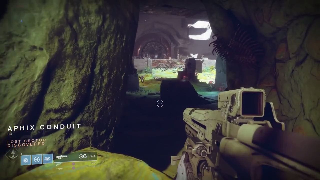 In order to gain entrance to The Aphix Conduit The Rupture Lost Sectors start by deploying at the same landing zone as Sunken Isles. Board the Sparrow then at the Sanctum of Bones insignia, make a right, then at the crossroads make a left. On the next turn, make a right to spot a group of enemies. Hug the right side and drive up the cliff to reach The Rupture. Keep going north and leap across to the other side, follow the path on the left then turn right to enter through the cave passage.
