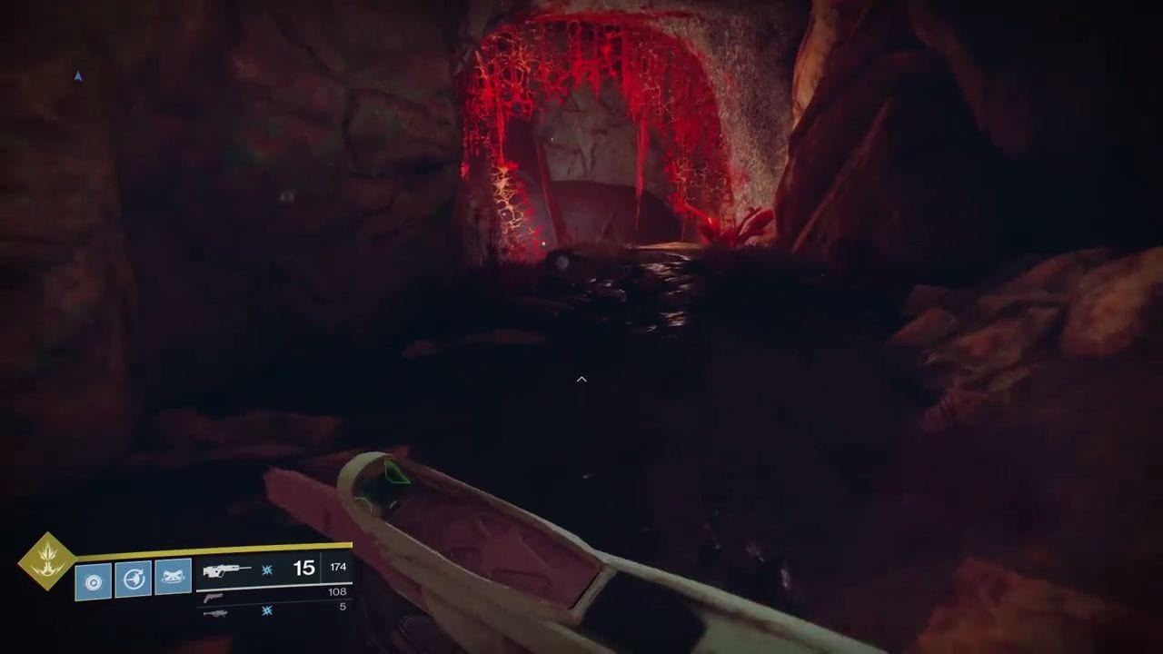 Inspect the right side to find the rock dyed in scarlet with the Lost Sector emblem tattooed on the surface to locate The Tangle Lost Sectors entrance. Be wary of the patrolling enemies by the entrance as you head to the dungeon.