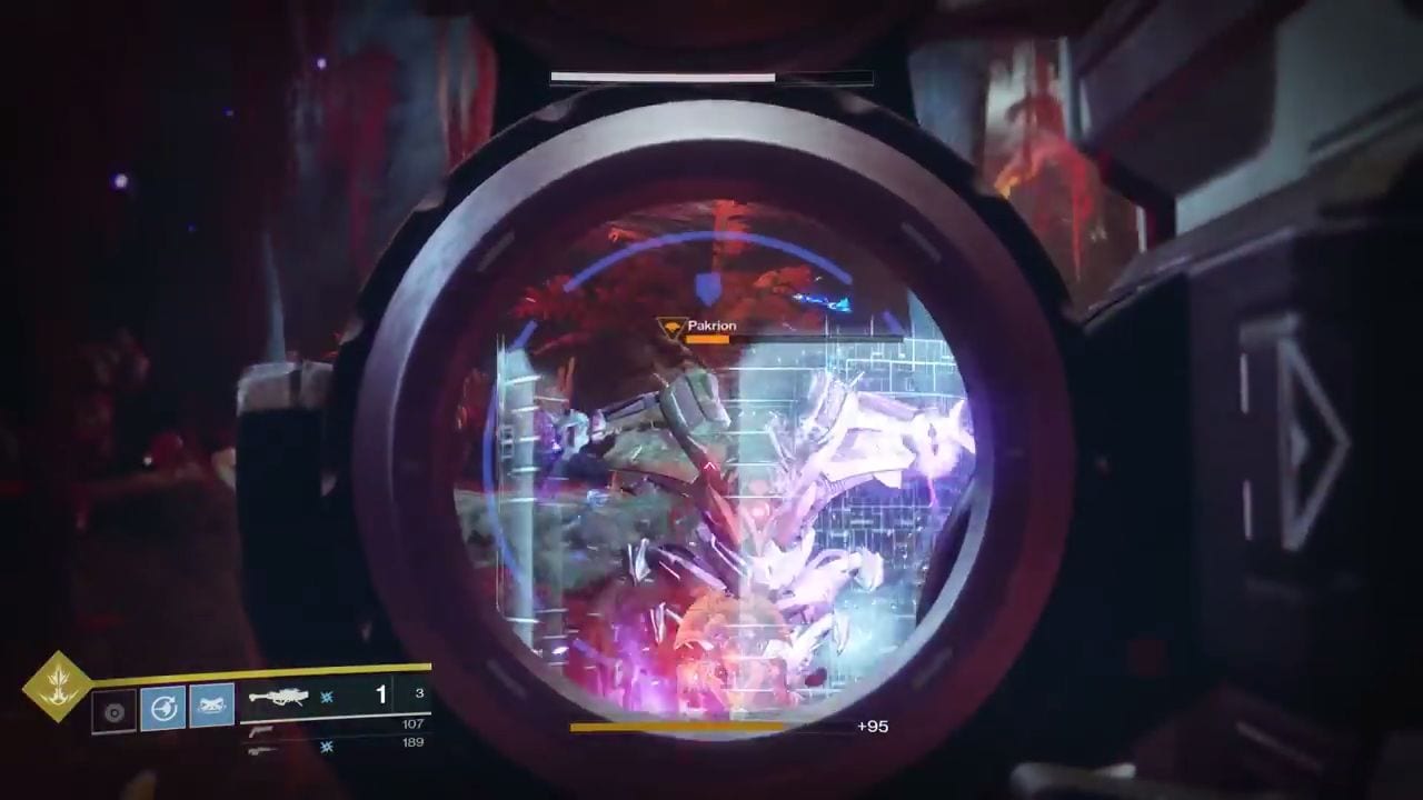 Fortunately the boss site is huge allowing for more breathing room. Defeat the Vex Hobgoblins clustered by the distant left then proceed to flank Pakrion. This fight is similar to the boss battle in the Mission against Hapax. Employ some side dodges to evade the explosives then reach for a relatively safe spot by the left alcove. Perform well-placed shots to strike its exposed ocular.