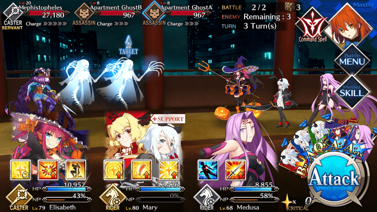 - Considering the low health pool of the Assassin class enemies, you’ll probably just need one Caster to make things easy. Bring a Rider class servant; particularly one that can burst down Mephistopheles like Medusa.