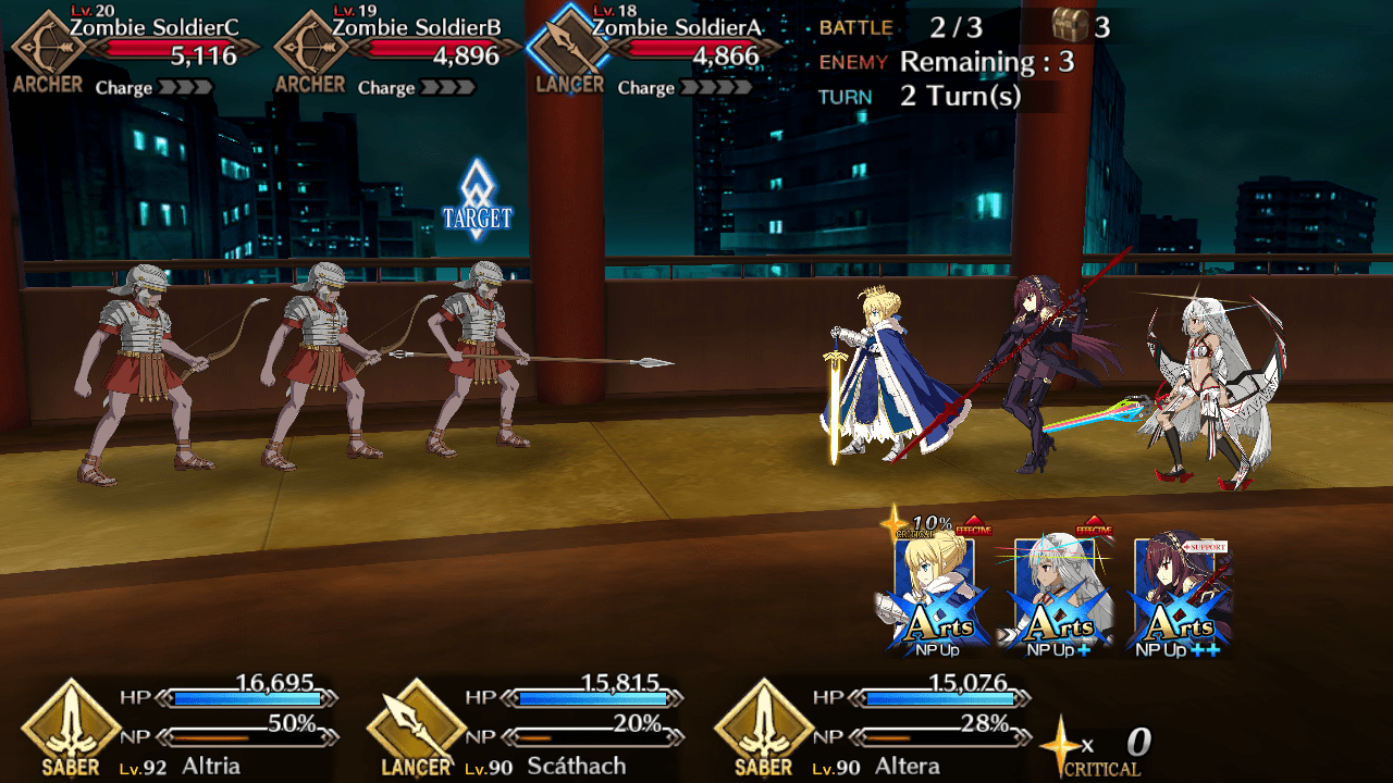 - The next row has two archer class enemies. Focus them down with a Lancer class servant and make short work of them.