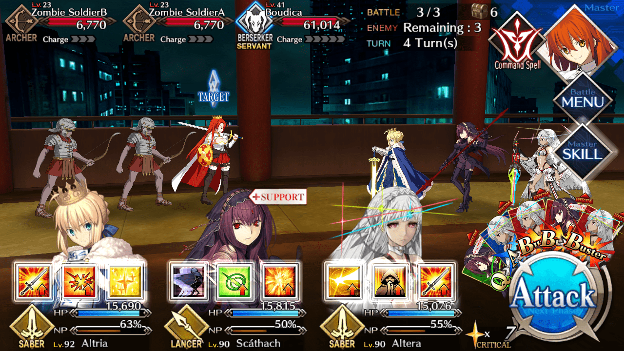 - Focus down the Archers to spare your Saber class servant the agony before bringing down Boudica with focus fire to finish the 3rd floor, 4th room quest.