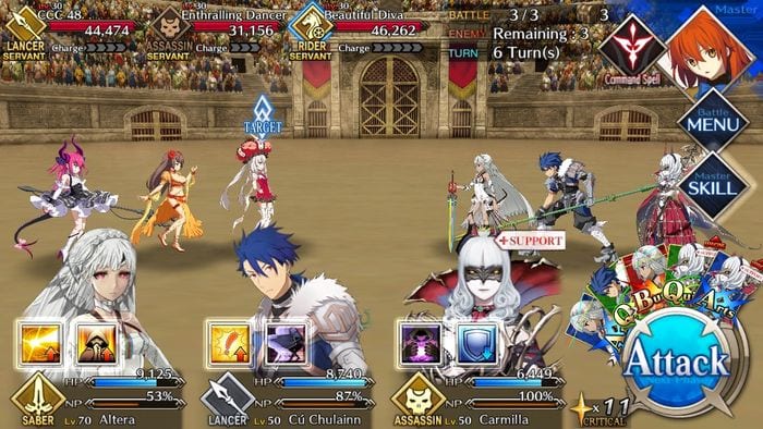 - At the end are the Diva servants, with your team composition it should have the necessary class advantage. Tap on Marie and have your Assassin trigger his offensive NP with either an Arts or Brave Chain to deal heavy damage before she gets to cast Beautiful Princess. Since Mata Hari has the lowest Charge of the lot, target her next and cast another NP, or perform an Arts Chain to fill up your gauge. Finally, take out Elisabeth Bathory using your Saber class servant whose NP should either be close or full by now depending on the Chain you used earlier to end this Qualifier.