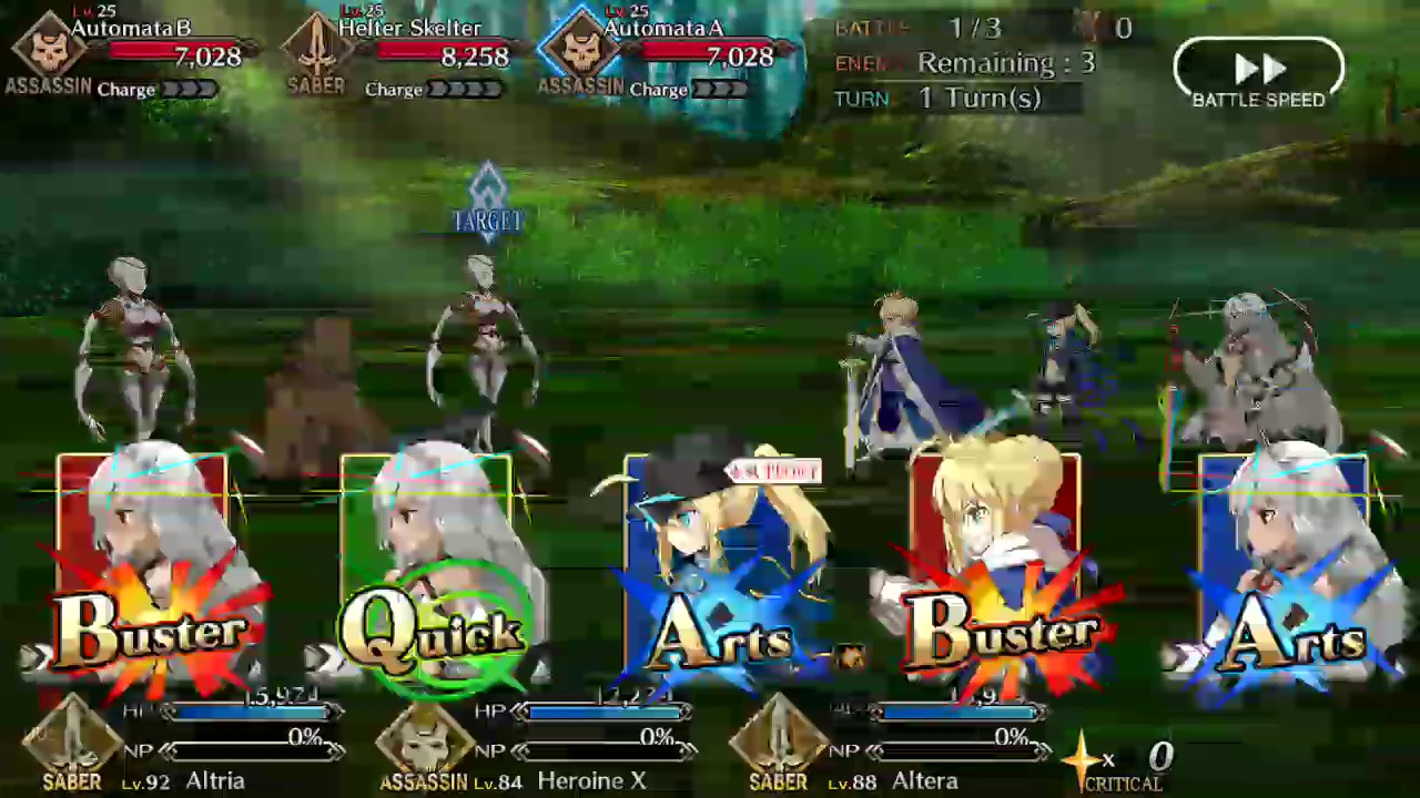 | Automata (Lvl 25/ Assassin/ 7028 HP) | Helter Skelter (Lvl 25/ Saber/ 8258 HP) | Automata (Lvl 25/ Assassin/ 7028 HP) |