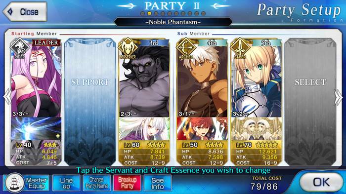 After figuring out which servants to mix and match with craft essence then, one can go team building. When one accesses the Formation option, the player can mix and match several different servants to form teams. While one can just mix and match any servant to form a team, there are some servants that work better with others. There are others, that work alone. Thus, there are several roles to consider: Support, Damage, Defense.
