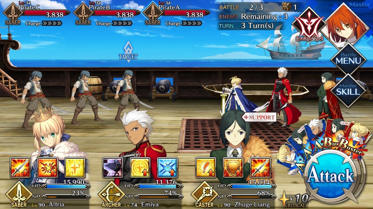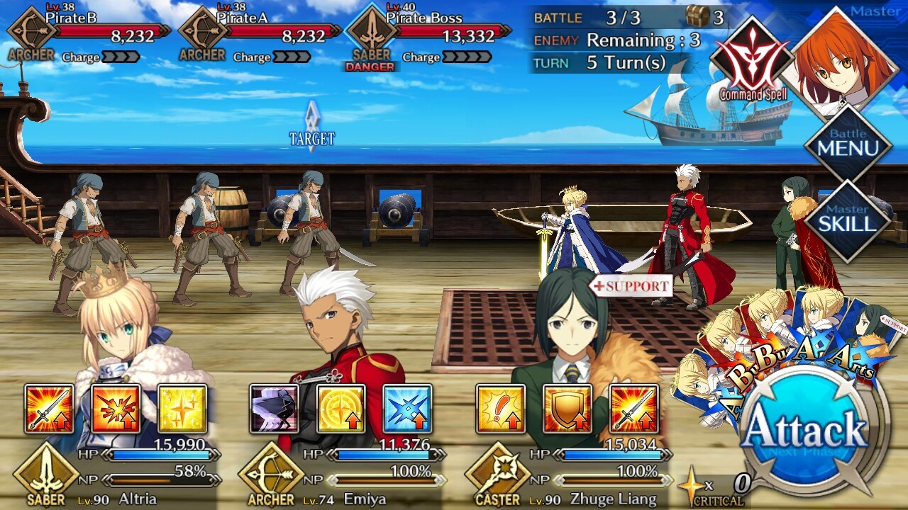 Pirate (Lvl 38/ Archer/ 8232 HP) Pirate (Lvl 38/ Archer/ 8232 HP) Pirate Boss (Lvl 40/ Saber/ 13,332 HP)