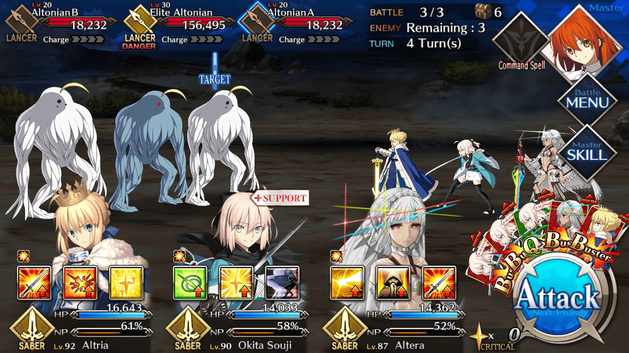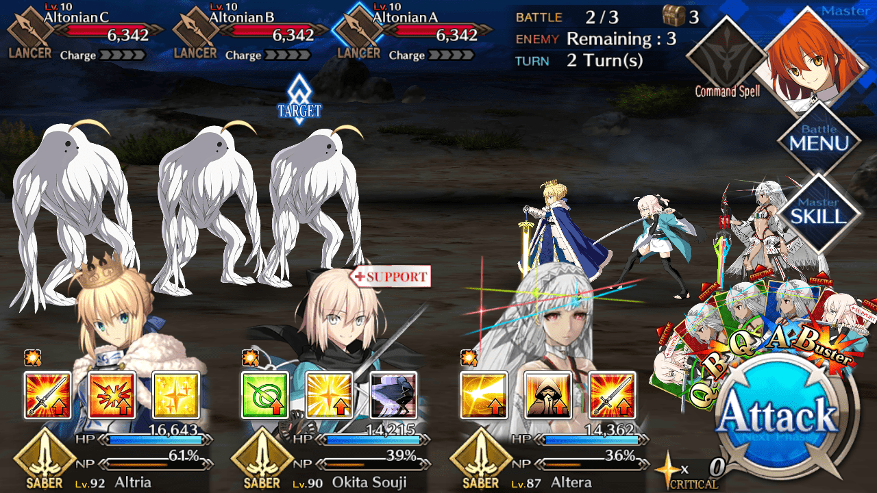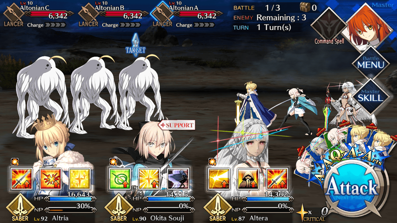 - Focus all your efforts in bringing down the Elite Altonian to a particular HP. Once low enough, you can use your multi-target noble phantasm to bring down all three enemies in one shot.