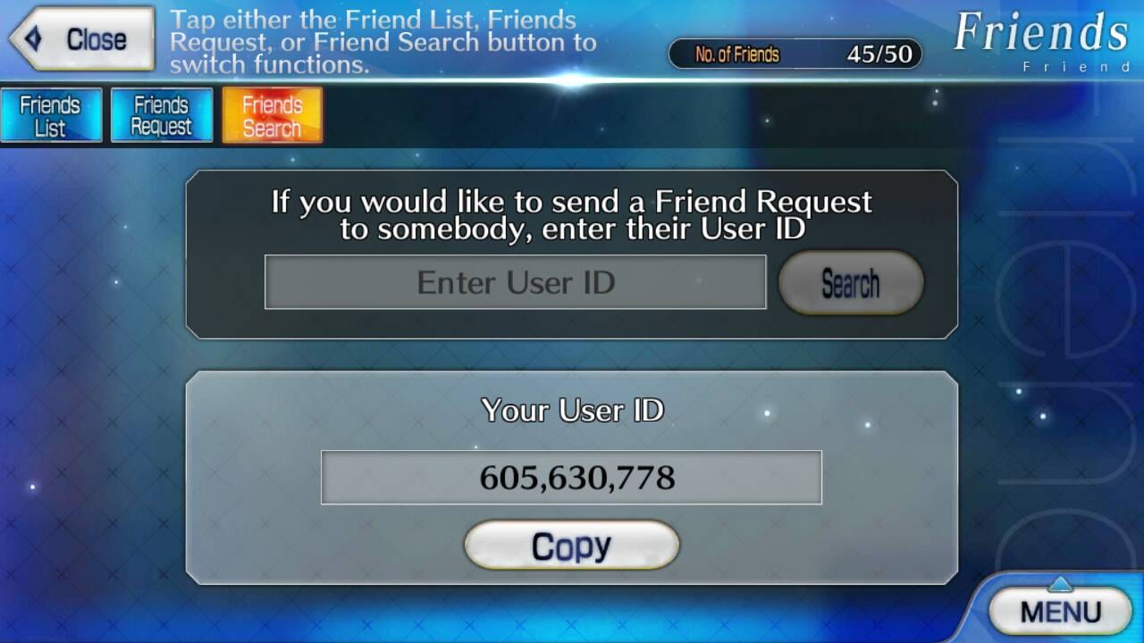 Adding friends requires one to go into the Friends option in the Main Menu. There, one can click Friend Request and input the User ID to gain more friends. However, take note – one only has a limited amount of friends depending per level. But nonetheless, one can’t have too many friends especially when battling high level enemies.