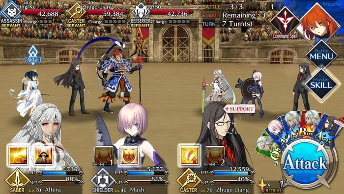 If the enemies still alive then kill assassin first since it could insta-kill your servant then the berserker. Enemy’s Zhuge does not have strong atk so you can leave him for the last.