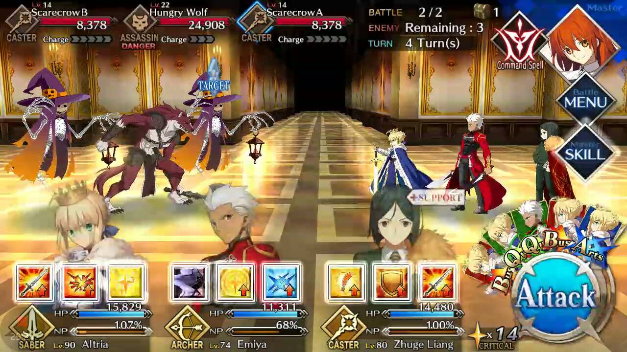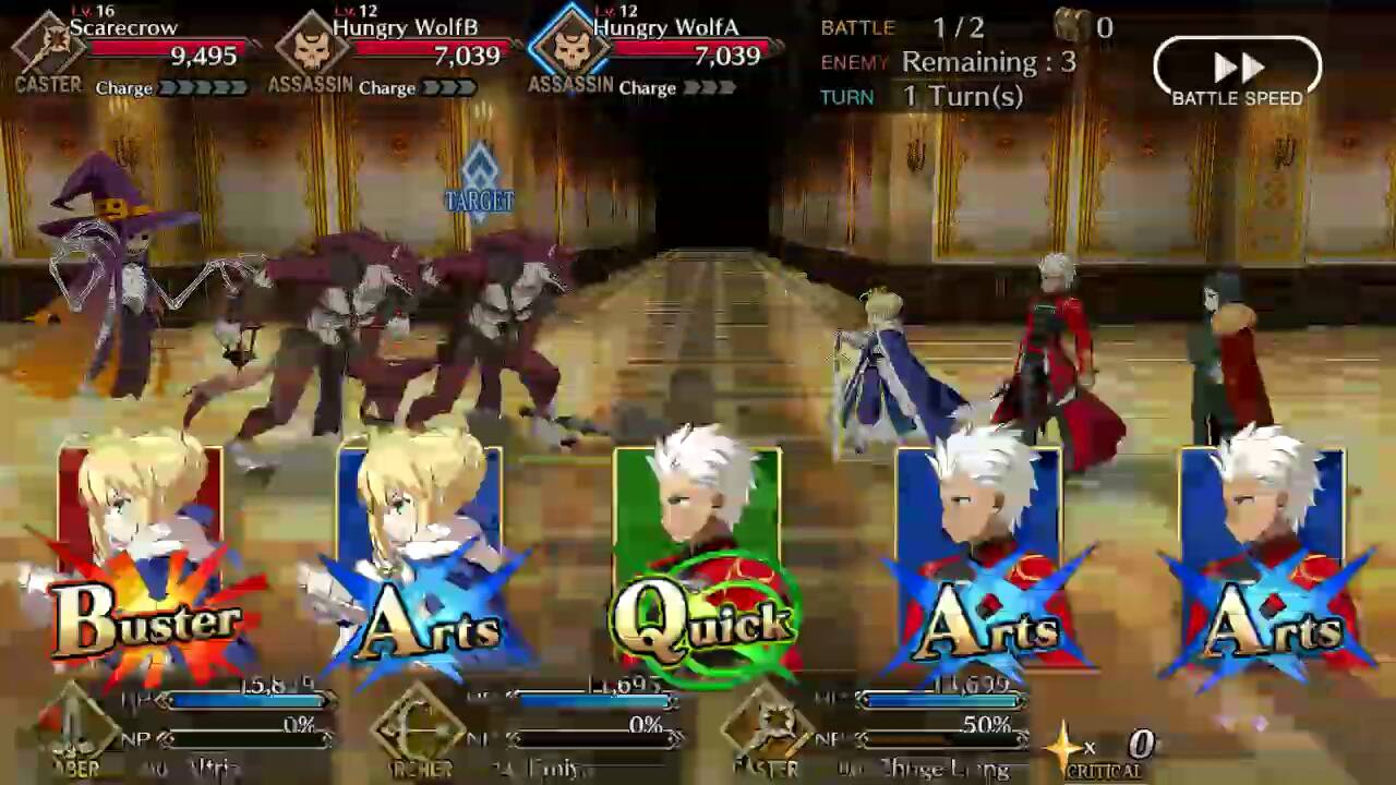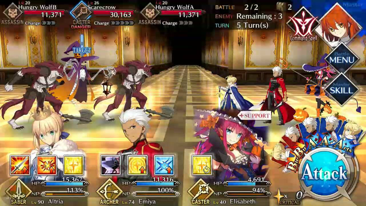 | Hungry Wolf (Lvl 20/ Assassin/ 11371 HP) | Scarecrow (Lvl 26/ Caster/ 30163 HP) | Hungry Wolf (Lvl 20/ Assassin/ 11371 HP) |
