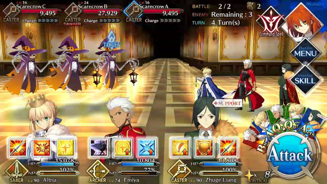 - For the first portion of the Hyper Enthusiastic Maid Cat Main Quest, it’s pretty much a sweep. Since the Scarecrows have low HP, they’re not much of a threat. However, do pay attention to their Present skill as it charges their NP gauge of an ally of their choice.