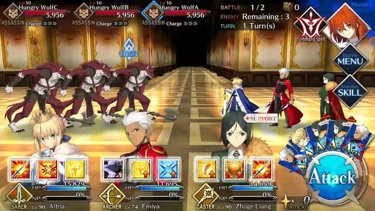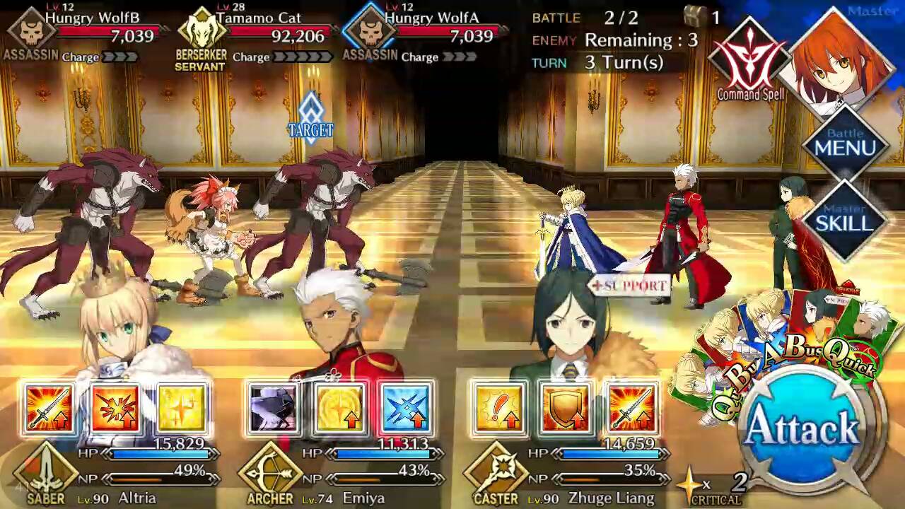| Hungry Wolf (Lvl 12/ Assassin/ 7039 HP) | Tamamo Cat (Lvl 28/ Berserker/ 92206 HP) | Hungry Wolf (Lvl 12/ Assassin/ 7039 HP) |