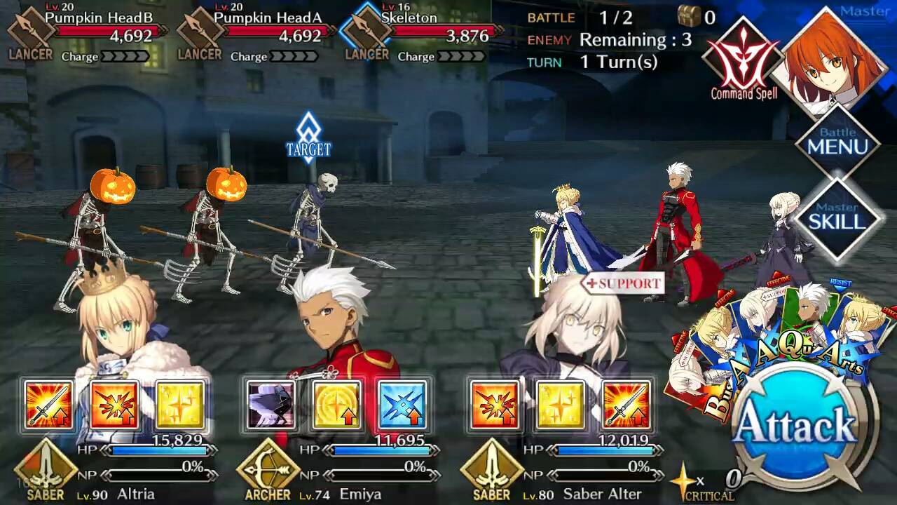 | Pumpkin Head (Lvl 20/ Lancer/ 4692 HP) | Pumpkin Head (Lvl 20/ Lancer/ 4692 HP) | Skeleton (Lvl 16/ Lancer/ 3876 HP) |