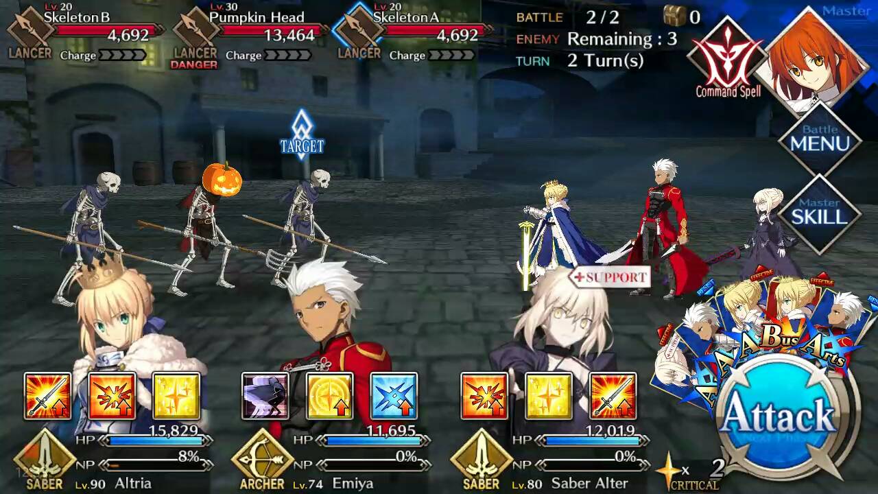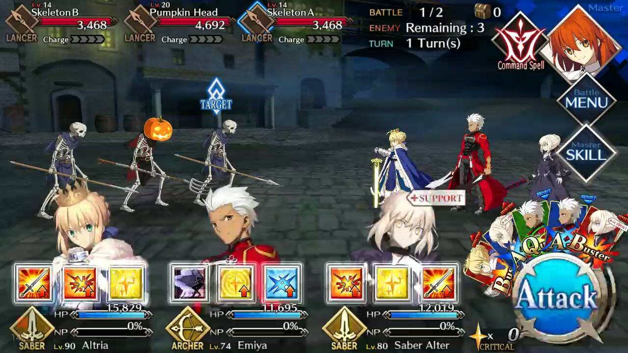 | Skeleton (Lvl 14/ Lancer/ 3468 HP) | Pumpkin Head (Lvl 20/ Lancer/ 4692 HP) | Skeleton (Lvl 14/ Lancer/ 3468 HP) |