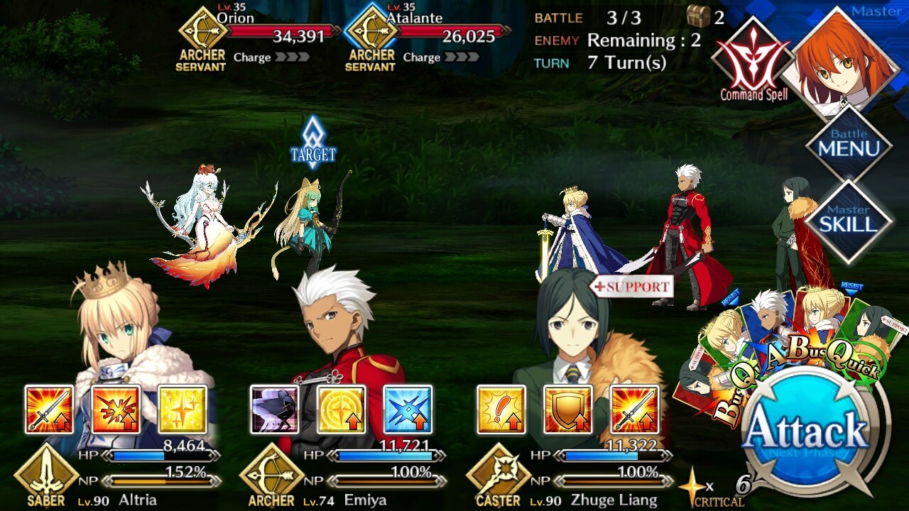 - For the Lunatic Party IV Quest, Lancer class servants will definitely have an advantage – especially during the latter part. The latter part has two Archer class servants, both who have high Critical rates. However, Atalante focuses more on critical hits in comparison to Orion. Prioritize taking down Atalante first as she has more offensive power in comparison to Orion.