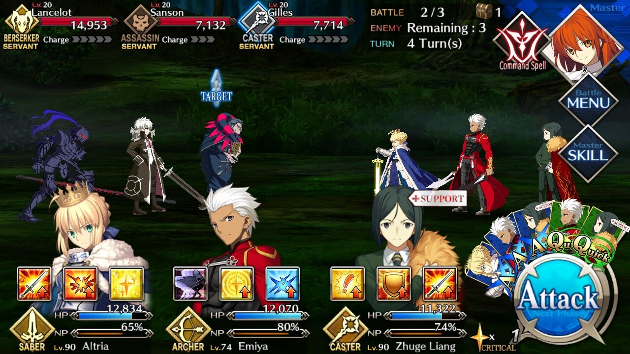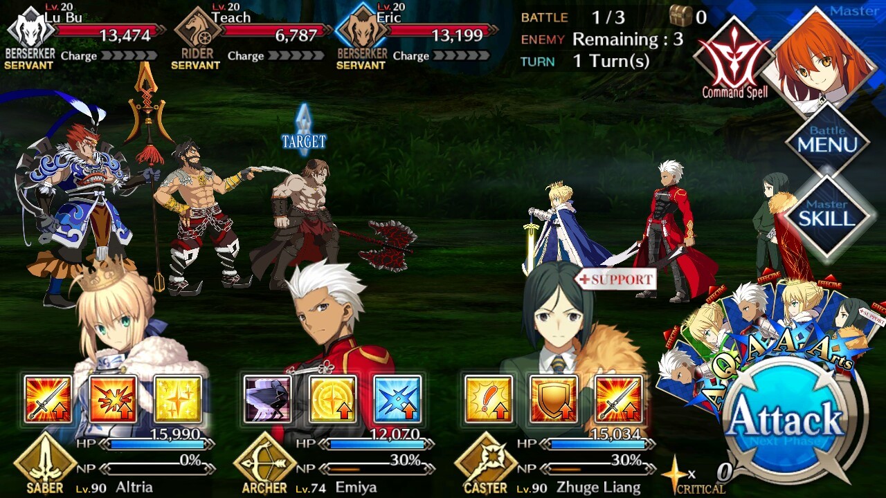 | Lu Bu (Lvl 20/ Berserker/ 13, 474 HP) | Edward Teach (Lvl 20/ Rider/ 6787 HP) | Eric (Lvl 20/ Berserker/ 13,199 HP) |