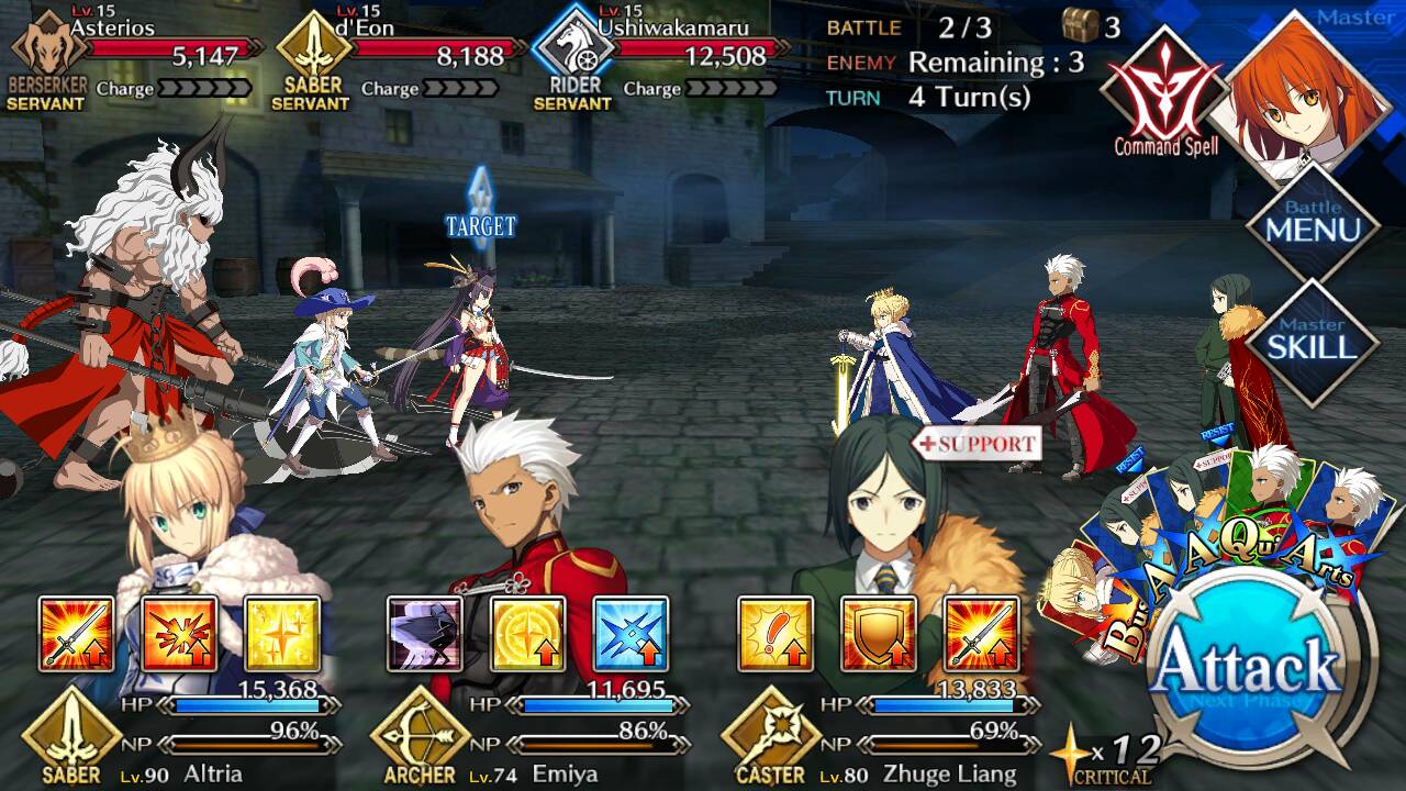 - Second wave – the biggest threat among the three is Ushiwakamaru. Due to her large HP and her high attack, she can whittle down Caster class servants fast. Take her out as fast as you can. Asterios can easily die in one hit if you have a powerful servant.