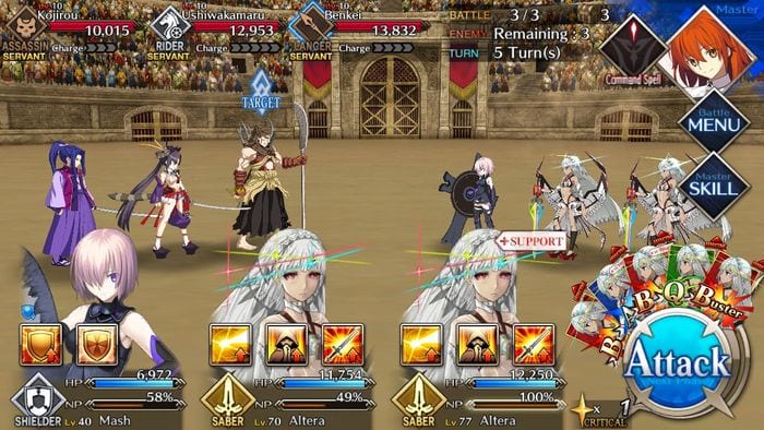 - For the last round, best take out Musashibou Benkei first due to his ability to skill seal. It may become quite troublesome to deal with. After, the player has a choice to take out either Ushiwakamaru or Sasaki Kojirou. Before you unleash an AoE NP, be sure to stack your Attack Buffs to ensure maximum damage. An example is casting Altera’s Tactics and Crest of the Stars, then following a Buster Chained with Photon Ray.