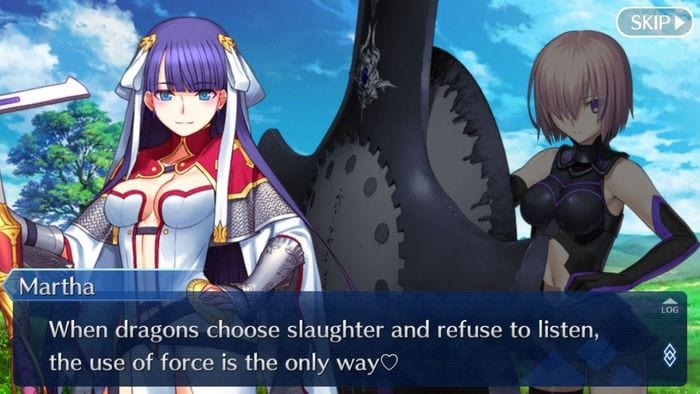Saint Martha initiates a light conversation with you, sharing some stories about her personal life. Mash timely complements her to boost her confidence. After exchanging smiles, Dr. Roman interrupts the conversation to report about sightings of creatures approaching along the Marseilles Coast.