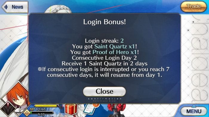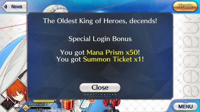To keep FGO as a Free-2-Play game entails not resorting to buying Saint Quartz in exchange for cash. To voluntarily optimize the amount of Saint Quartz obtained, take advantage of the daily log-in bonuses. This will prep you for the big events which at times will host Summoning Pools with higher drop rates than normal. At the moment, certain events even shell out Summoning Tickets for free, and while there is also the choice of spending Mana Prisms, it is unfortunately limited by the time the shop runs out of stock.