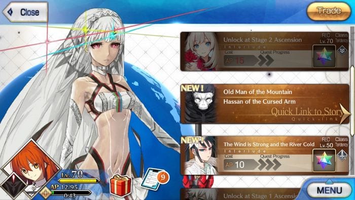 • Another way of gathering Saint Quartz is to do Interludes. By Ascending servants and using them frequently to raise their bond level, the game allows you to explore more of their backstory once you gain access to their Interludes. Finishing each interlude will guarantee a Saint Quartz for your efforts. Do note that Interludes will have varying Rec. levels, with some unique enemies appearing on certain ones.