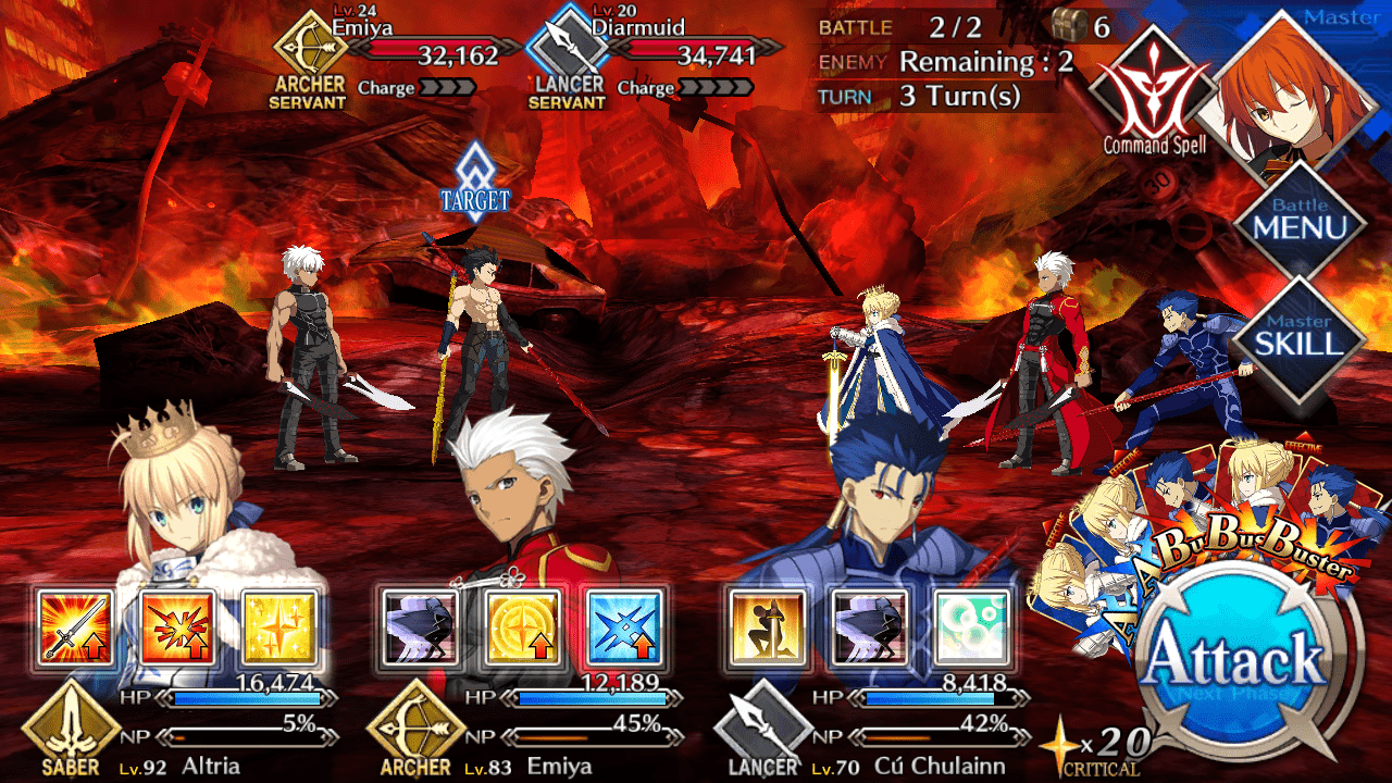 - The second wave however has EMIYA and Diarmuid in it; both being legitimate servants. If you have a Lancer class servant, focus down on EMIYA as fast as you can. Doing so will not only prevent him from using Unlimited Bladeworks but also from evading. Once EMIYA goes down, take down Diarmuid with a Saber class servant to finish the battle.