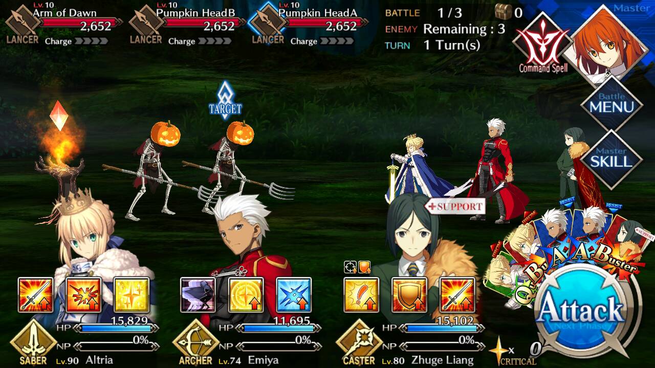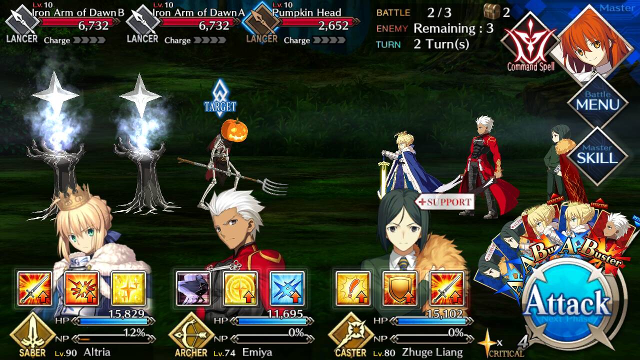 | Iron Arm of Dawn (Lvl 10/ Lancer/ 6732 HP) | Iron Arm of Dawn (Lvl 10/ Lancer/ 6732 HP) | Pumpkin Head (Lvl 10/ Lancer/ 2652 HP) |