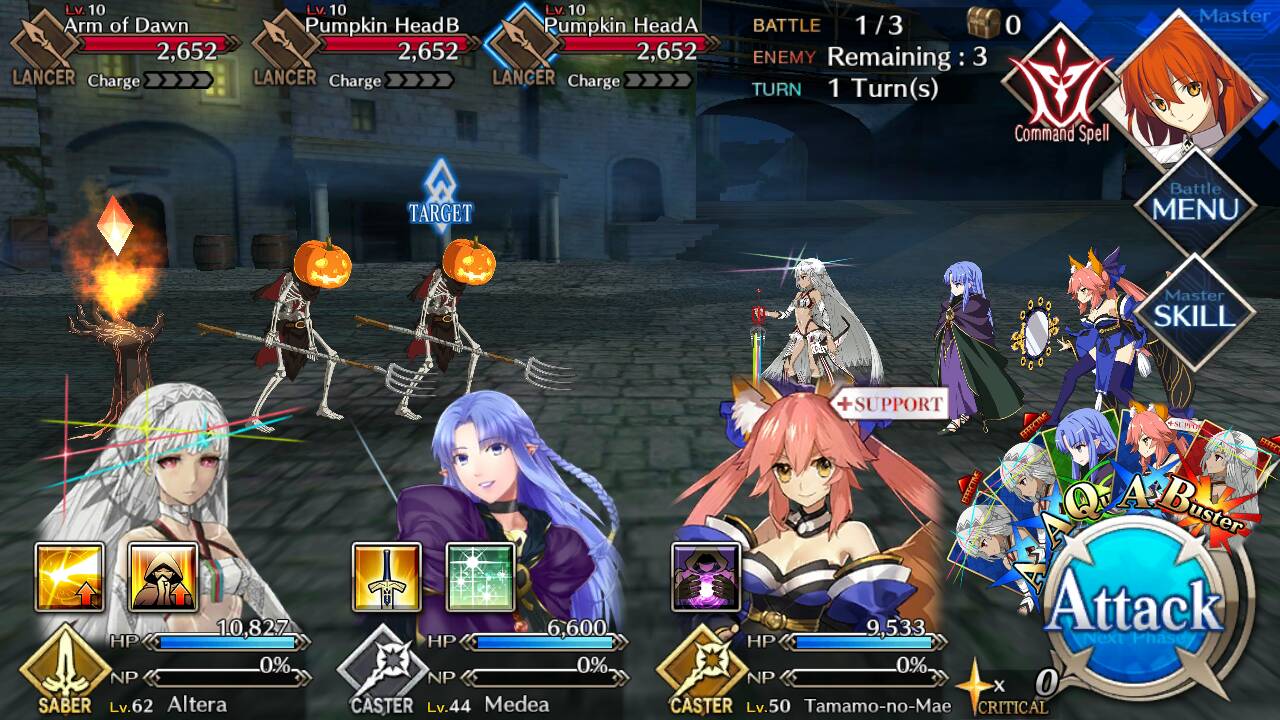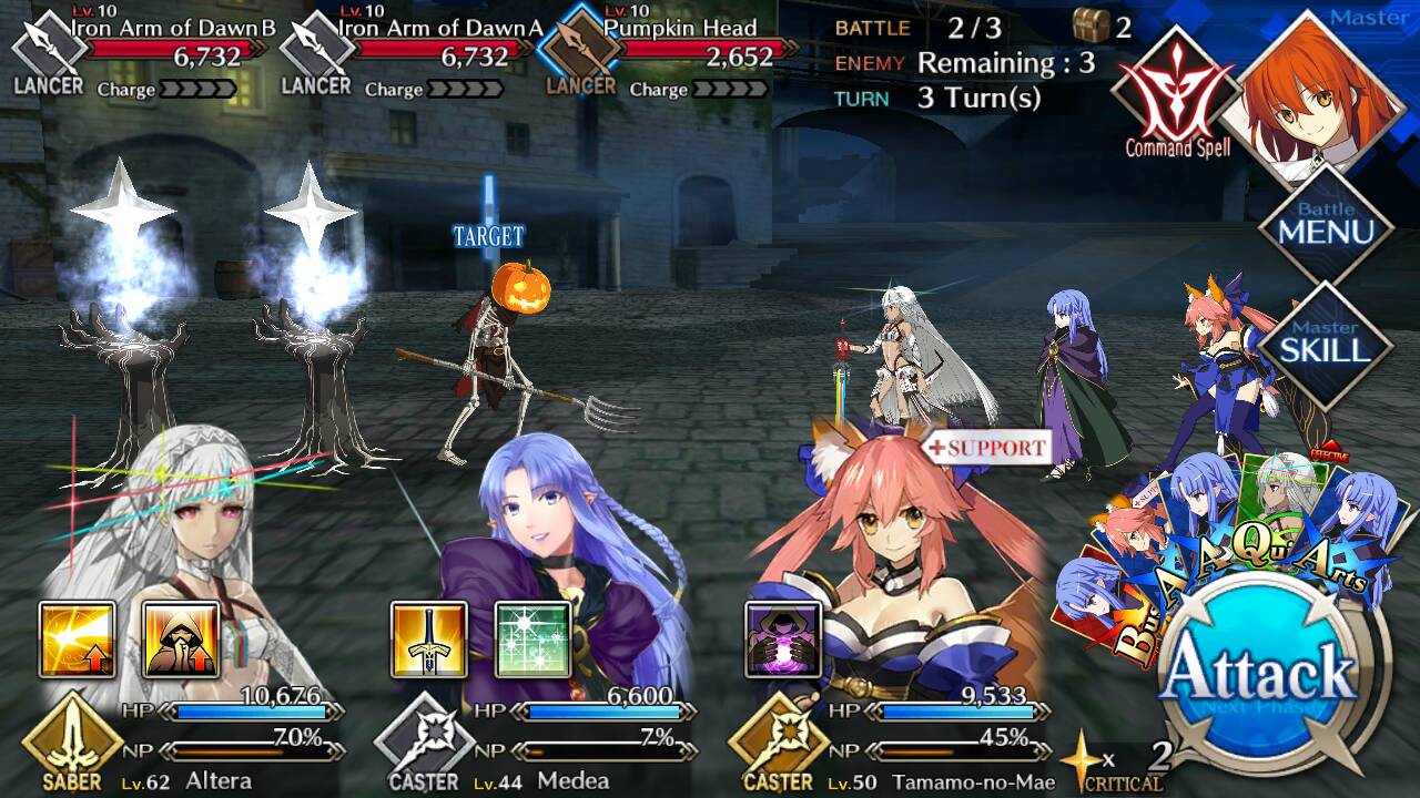| Iron Arm of Dawn (Lvl 10/ Lancer/ 6732 HP) | Iron Arm of Dawn (Lvl 10/ Lancer/ 6732 HP) | Pumpkin Head (Lvl 10/ Lancer/ 2652 HP) |