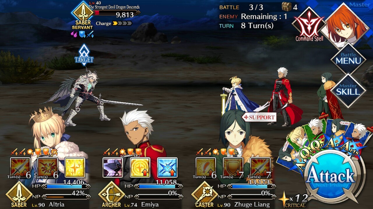 - When you engage the first two waves, charge up the NP Gauge of your Archer class servant. Most of the time, Archer class servants have a multi-hit noble phantasm. For this case, EMIYA has Unlimited Bladeworks which reduces incoming attack damage for the next few turns.