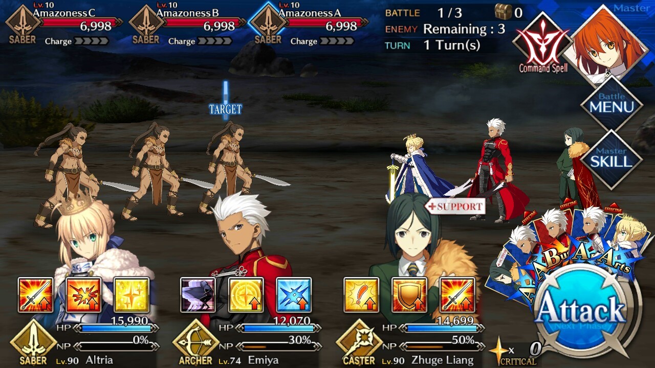 | Amazoness (Lvl 10/ Saber/ 6998 HP) | Amazoness (Lvl 10/ Saber/ 6998 HP) | Amazoness (Lvl 10/ Saber/ 6998 HP) |
