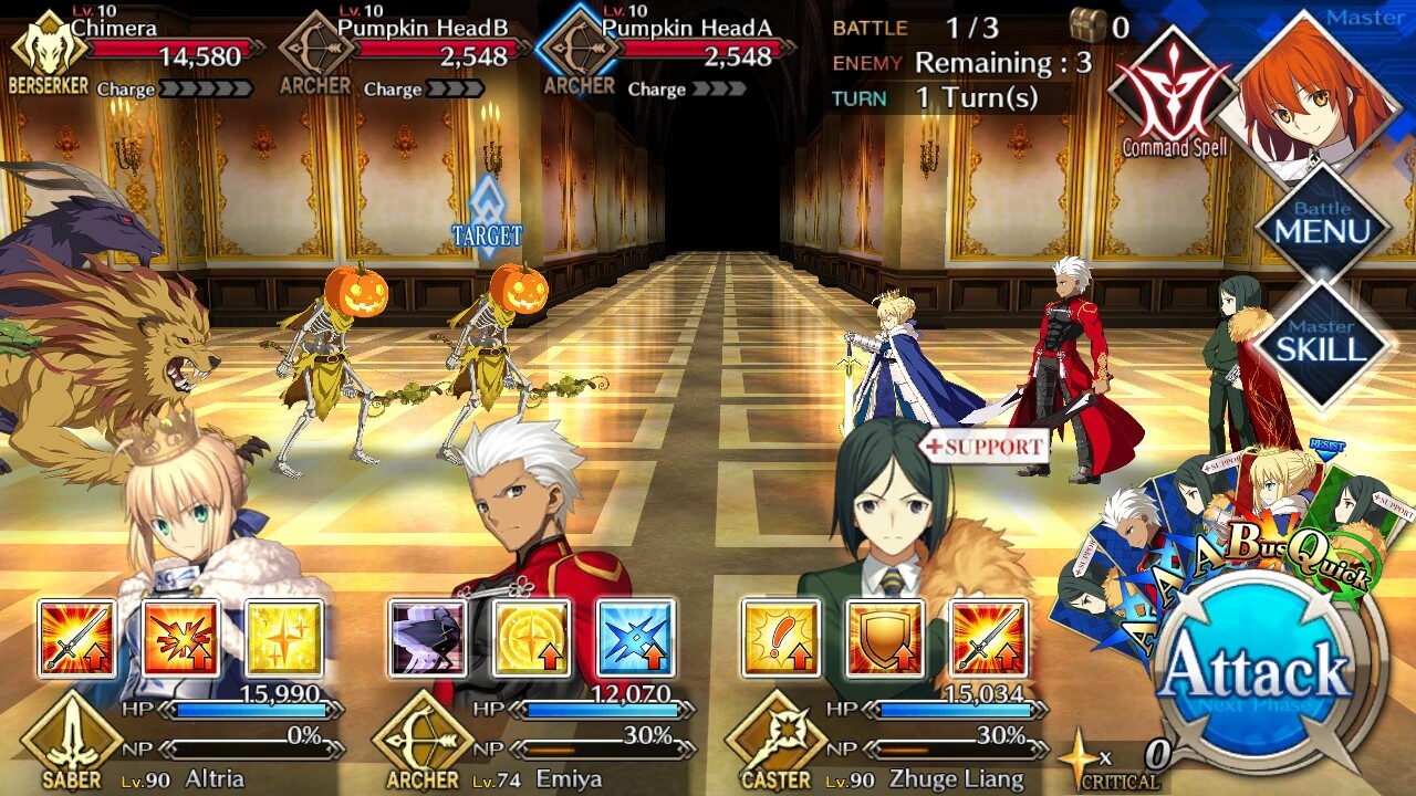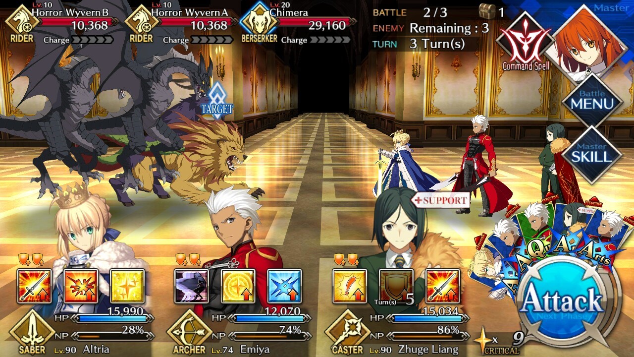 - Best bring a defensive servant such as Mash to soften the incoming blows. While Zhuge Liang (Tactician’s Advice) and Georgios (Guardian Knight) can do the same thing, Zhuge Liang takes extra damage from Riders.