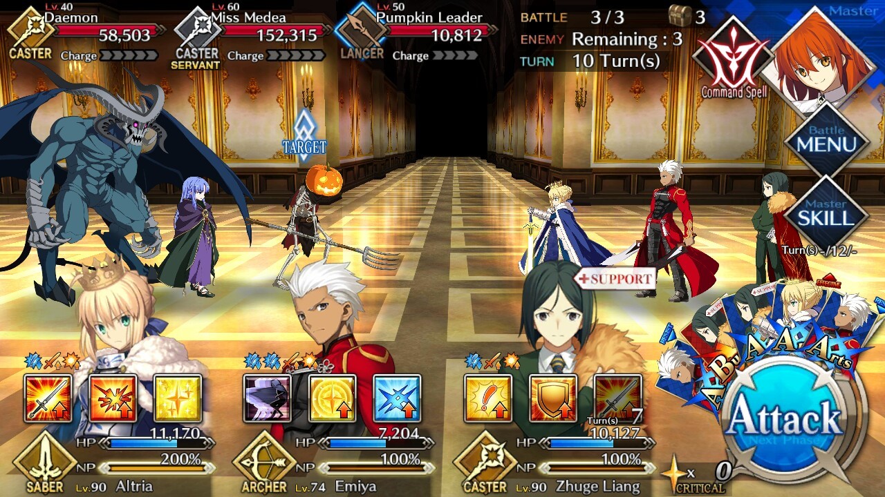 | Daemon (Lvl 40/ Caster/ 58,503 HP) | Miss Medea (Lvl 60/ Caster/ 152,315 HP) | Pumpkin Leader (Lvl 50/ Lancer/ 10812 HP) |