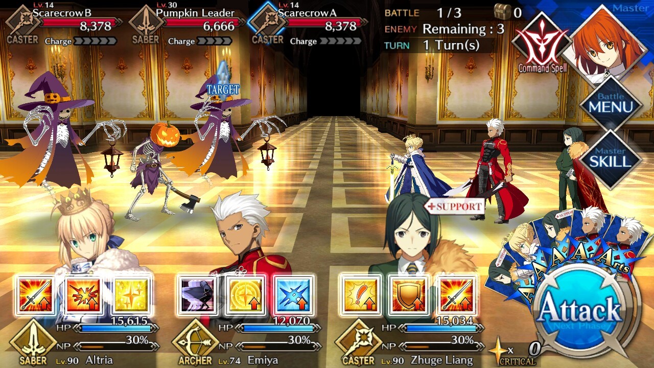 | Scarecrow (Lvl 14/ Caster/ 8378 HP) | Pumpkin Head (Lvl 14/ Lancer/ 6666 HP) | Scarecrow (Lvl 14/ Caster/ 8378 HP) |