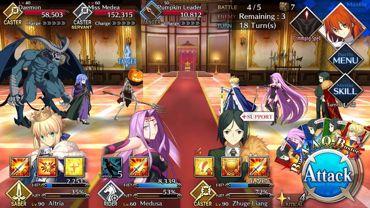 | Daemon (Lvl 40/ Caster/ 58,503 HP) | Miss Medea (Lvl 60/ Caster/ 152, 315 HP) | Pumpkin Leader (Lvl 50/ Lancer/ 10,812 HP) |