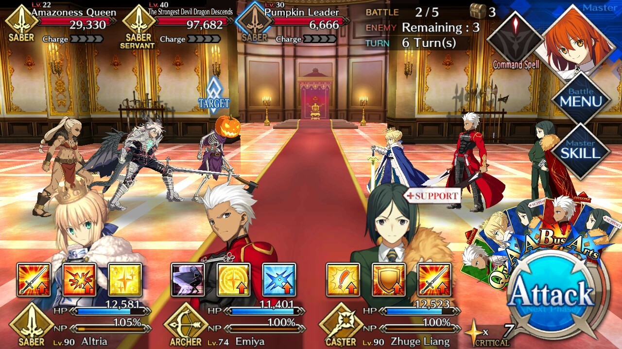 | Amazoness Queen (Lvl 22/ Saber/ 29, 330 HP) | The Strongest Devil Dragon Descends (Lvl 40/ Saber/ 97682 HP) | Pumpkin Leader (Lvl 30/ Saber/ 6666 HP) |