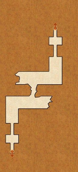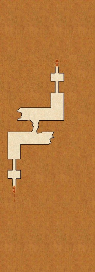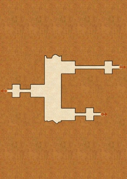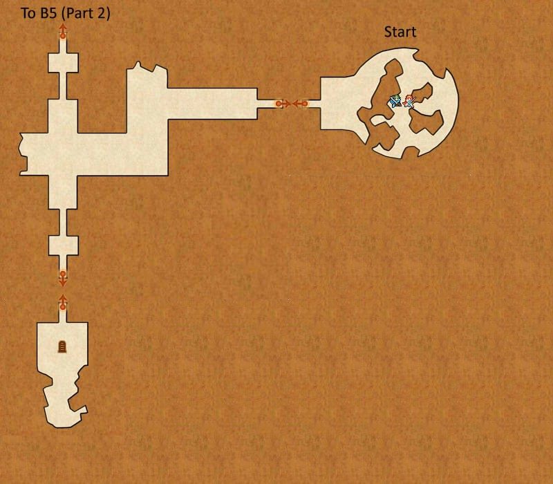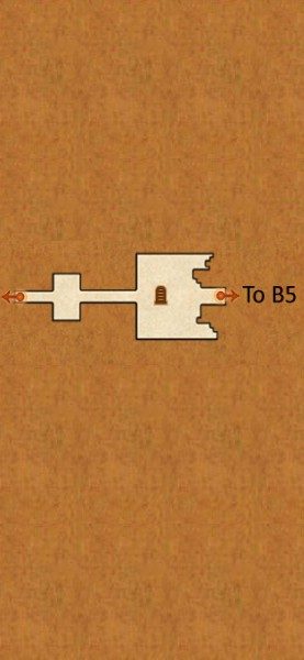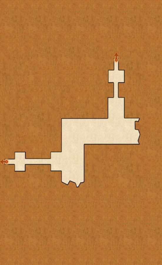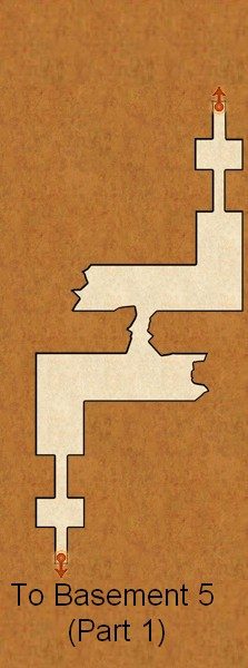 This is the map halfway through the labyrinth. First, look for the only exit in that room before heading into the next hall. Once you reach the hall, you’ll find yourself at a “T” shaped path. If you turn left, you’ll only find a Tombstone. So, make a right and head into the second part of Basement 5.