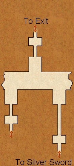 On the second floor, you’ll find a Silver Sword. If you want to get there, first head straight past the tombstone. Once you get past the tombstone, head straight until you find a forked pathway. One pathway leads you to the Silver Sword. The other one, moves you to the next floor. If you’re facing the wall, head there before making a right. It should lead you to the Silver Sword. After getting the Silver Sword, head back to the forked path and then take the path that leads to another hallway. There, you’ll find another tombstone that marks the end of Basement 2.