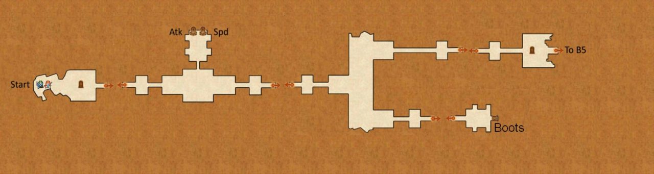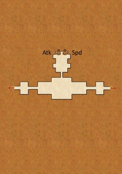 First, follow the path past the tombstone. At the second map, you’ll find yourself at an intersection again. If you turn left, you’ll find two Sacred Springs carrying Skill and Attack. Like any spring, it has only three charges so spend it wisely. After grabbing the springs, head out of the hall and into the third map. Once you head into the third map, there’s a forked road. If you take the path on the right, it’ll lead you to a room with boots. However, turning left – you’ll head towards the exit which will lead you to Basement 5.