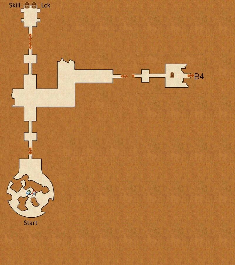 Upon reaching Basement 3, you’ll notice the room is rather circular in shape. Head out to the only exit before finding yourself in another hallway. Once you reach the next map, first head straight up. You’ll then find yourself in another room with two Sacred Springs: one with Skill and another with Luck. After that, head back to the forked path and turn left if you’re coming from the Sacred Springs room. Follow the path until you reach the exit that leads you into the next tombstone room that marks the end of Basement 3.
