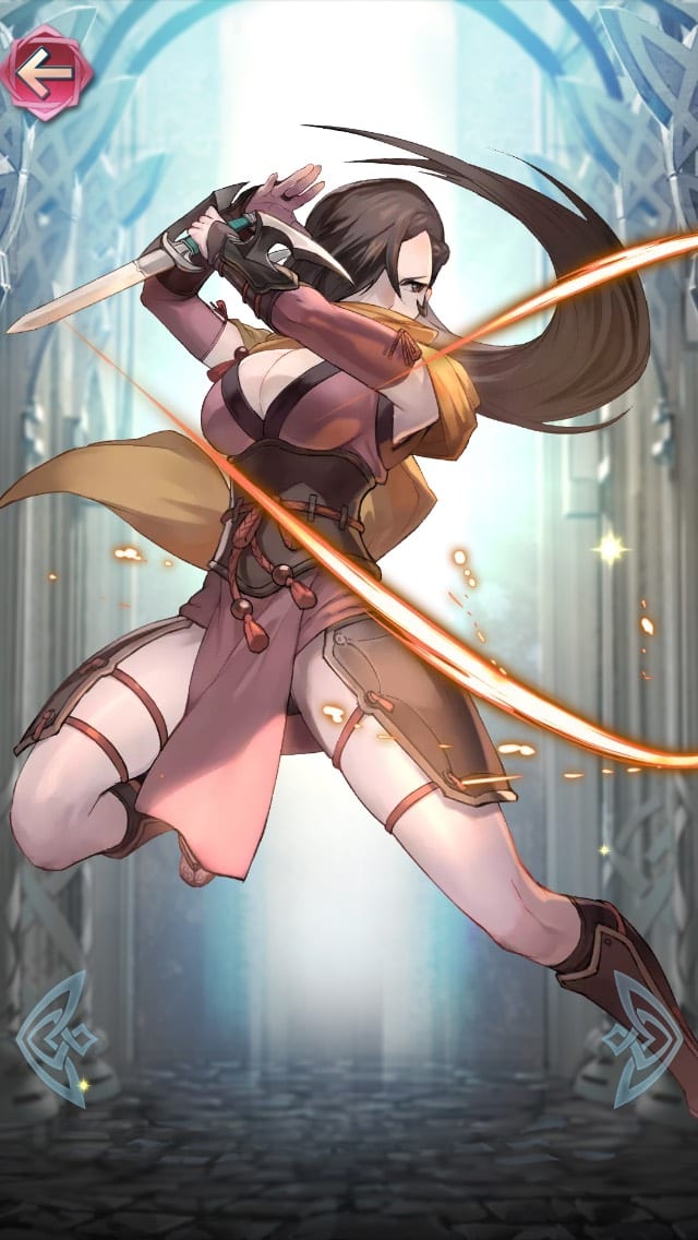 Belongs to the Hoshido clan and fulfills the role as one of the retainers for Lord Ryoma. She first appears in Fire Emblem Fates. The Honorable Ninja returns as a dagger class infantry in Fire Emblem Heroes.
