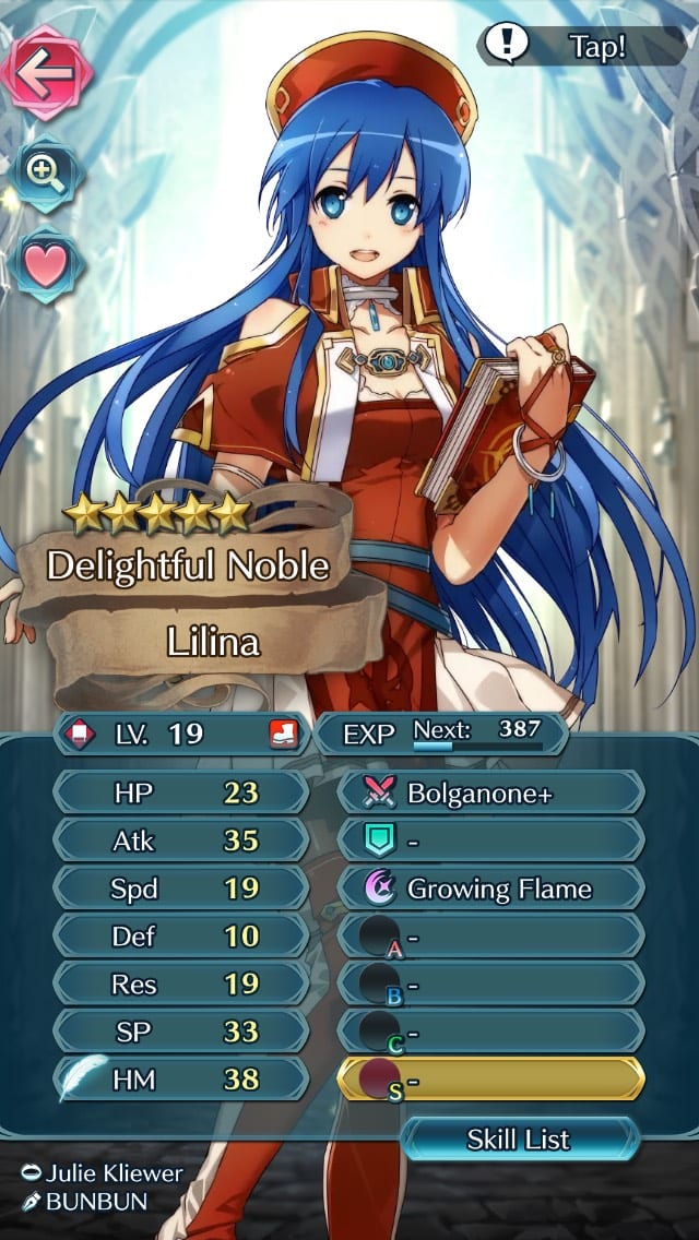 Lilina is a glasscannon red tome unit which counters as a tome killer due to her Resistance. She unfortunately suffers from poor Defense and Speed, leaving her vulnerable to Bow and Dagger type units. Still, with proper Skill investment, she can shine when built to fulfill an offensive role.