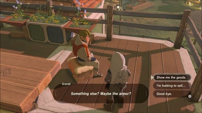 The son of Robbie, Granté has several armor gears available for purchase. For every unique piece that you break, Granté will offer them to you at premium prices, with armor sets being the most expensive at 4000 Rupees each piece. This is your chance to obtain any of the unique equipment broken or lost in the game.