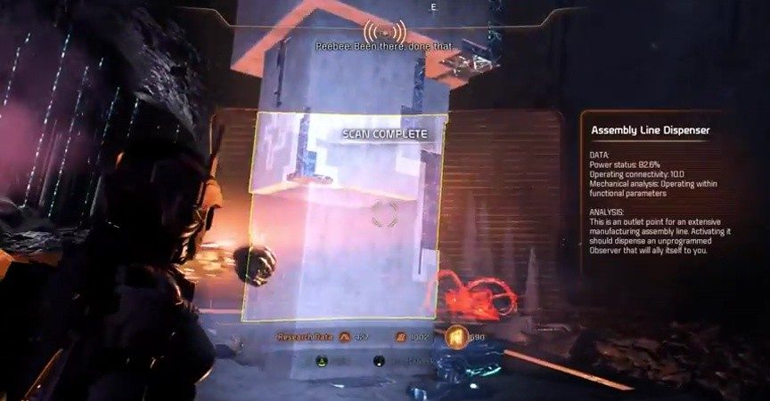 After dealing with her men, make a right from the entrance and you’ll find yourself in front of the lava. There, you’ll have to scan the console on your upper right to have the assembler activate it. Head to the large column on the left most area to have an allied Observer join you. Head back to the right, scan the console and a bridge will appear. Jump over the bridges and head over to the console where you’ll have a cutscene.