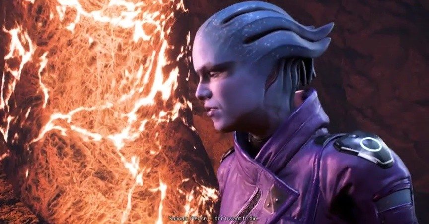 Peebee then explains that the escape pod is the only way in. Since the Tempest can’t land and no way on ground, using is the pod is their best option. After asking where the hell you’re going, you find that Peebee‘s gonna throw you into a volcano. As much as she says that you’ll land on flat ground, she’s only assuming if her scans are correct. And apparently, she has no plan to go back home.