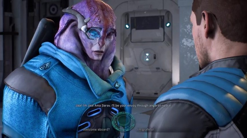 | Jaal: “I’m Jaal Ama Darav. I’ll be your envoy through Angaran space.” | ||