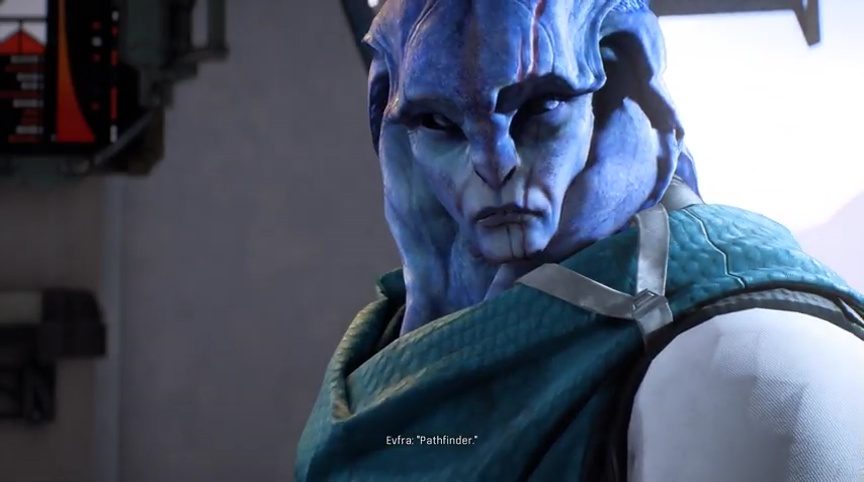 Once you enter, you hear Evfra throwing a fit about losing Voeld. When Jaal introduces you to Evfra, there’s a clear sign of distrust in his eyes.